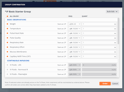 Use this personalized list to get through patient rounds, too! From just one screen, you can easily share essential details on all your patients with the next care team, including each patient’s signalment, the reason for their visit, triage status, and in Tx view, review upcoming treatments!