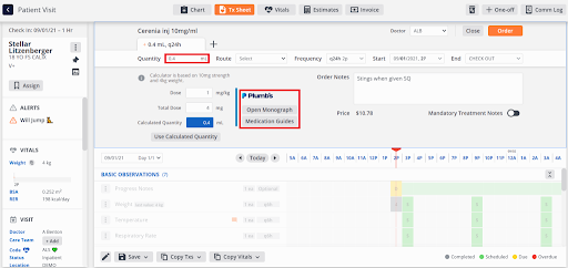 Instinct’s dose calculator uses patient weights and medication concentrations (set up by the Instinct team or your administrators) right in the treatment sheet, so you never have to interrupt your process to chase down a calculator. Once the patient’s weight has been entered, any medication with a calculator will allow you to set a patient’s dose without ever leaving the treatment sheet.