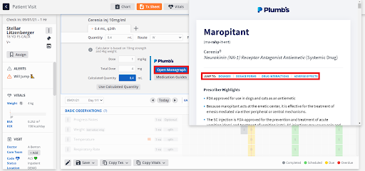 Medications with calculators are linked directly to Plumb’s, eliminating the need for manual calculations. Navigate to the Plumb’s page for the medication you need and read up on the same indications, interactions, and dose recommendations you’d see on paper.
